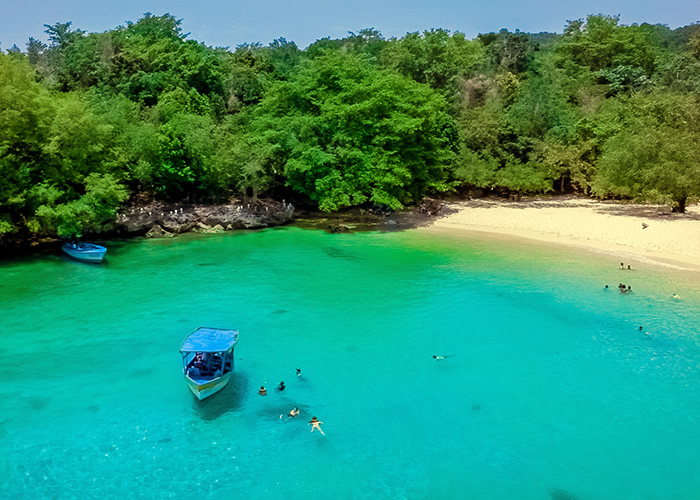 Keep an eye out for tree frogs as you enjoy a boat trip that winds beneath the many river channels that lie beneath the shady canopy of the mangrove forest. Your boat will pass beneath a natural stone arch to arrive at the unique El Caletón Beach. Here you can swim in the sparkling waters and rest awhile on the deserted sands. You’ll also get the chance to explore caves and swim in the crystal ocean waters of ‘La Piscina,’ a cove at the very edge of the lagoon.
